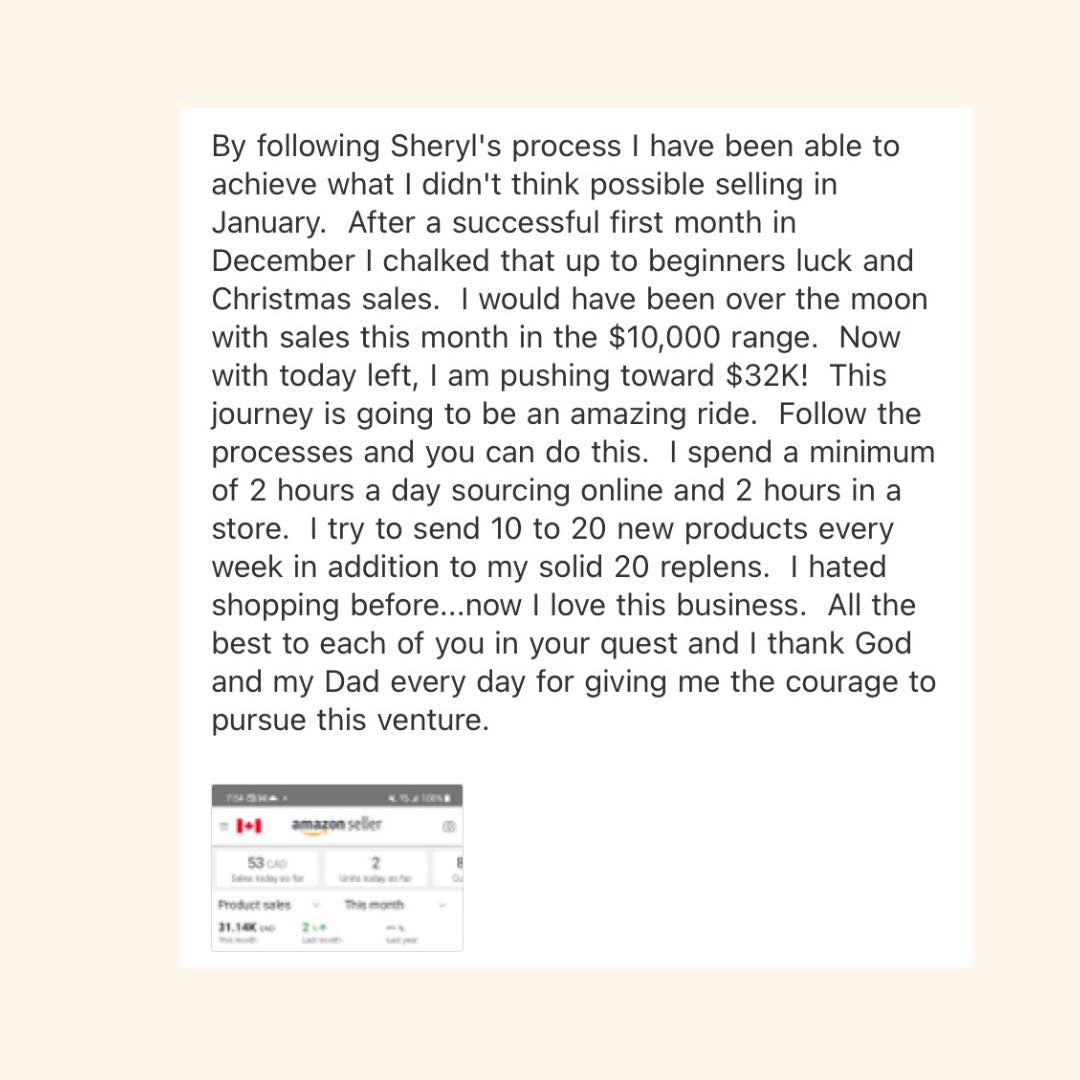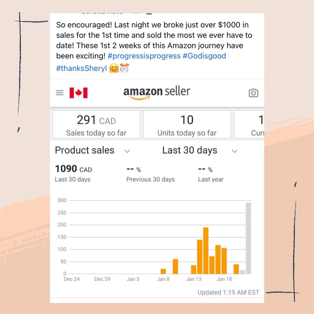 Hi there! If we haven’t met yet, I’m Sheryl — a full-time mom turned Amazon coach who went from earning $14/hour in a bakery to building a million-dollar business online.
