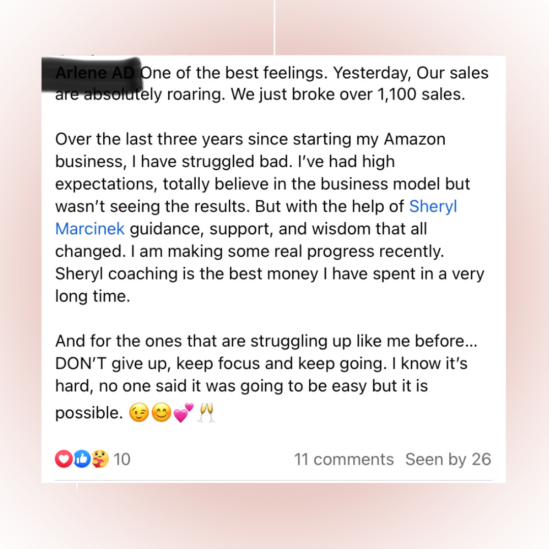 I’m Sheryl Marcinek – a proud FBA Coach & Consultant, and my life revolves around two incredibly important roles: being a full-time mom and a dedicated entrepreneur.